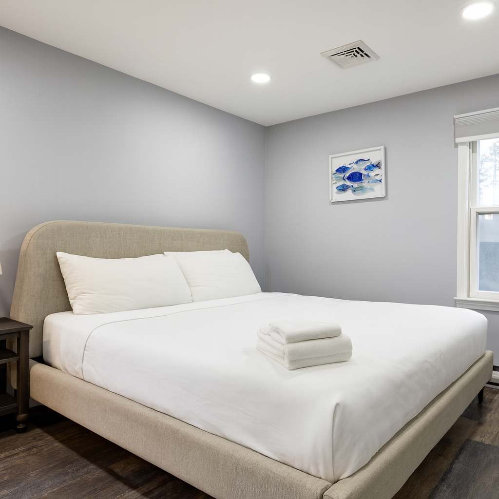 Just steps from the sand, this fully renovated home offers the perfect Cape Cod getaway. With three bedrooms and two full bathrooms, the house comfortably sleeps up to eight guests. The master features a king bed, the second bedroom a queen, and the third two bunk beds, ideal for families or groups. Both bathrooms are updated with standing showers, rain showerheads, and handheld options for a spa-like experience.